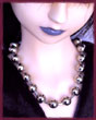 A cool, chunky necklace of metal balls linked together.